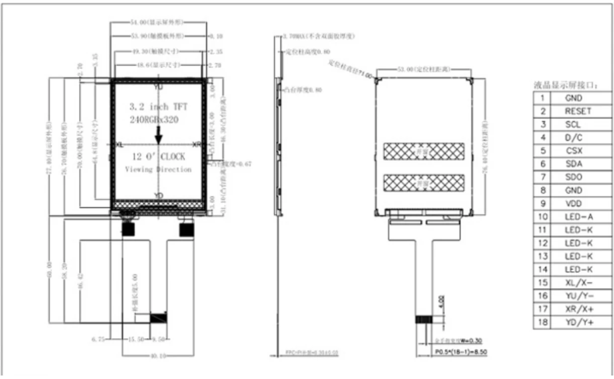3,2 hazbeteko tenperatura zabaleko IPS TFT TFT ukipen-pantaila txikiko moduluak 4 haritako SPI serieko interfazea du, diseinu ezberdinetan integratzea erraztuz. Bere 54,00 × 77,40 × 3,70 mm-ko (W×L×D) dimentsio trinkoak espazio mugatu gabeko gailuetarako aproposak dira, eta 48,60 × 64,80 mm-ko pantaila aktiboaren eremuak pantailaren tamaina eta eramangarritasuna orekatzen ditu, eta aukera ezin hobea da industria-kontrol paneletarako, eskuko probagailuetarako eta kontsumo-elektronikarako.