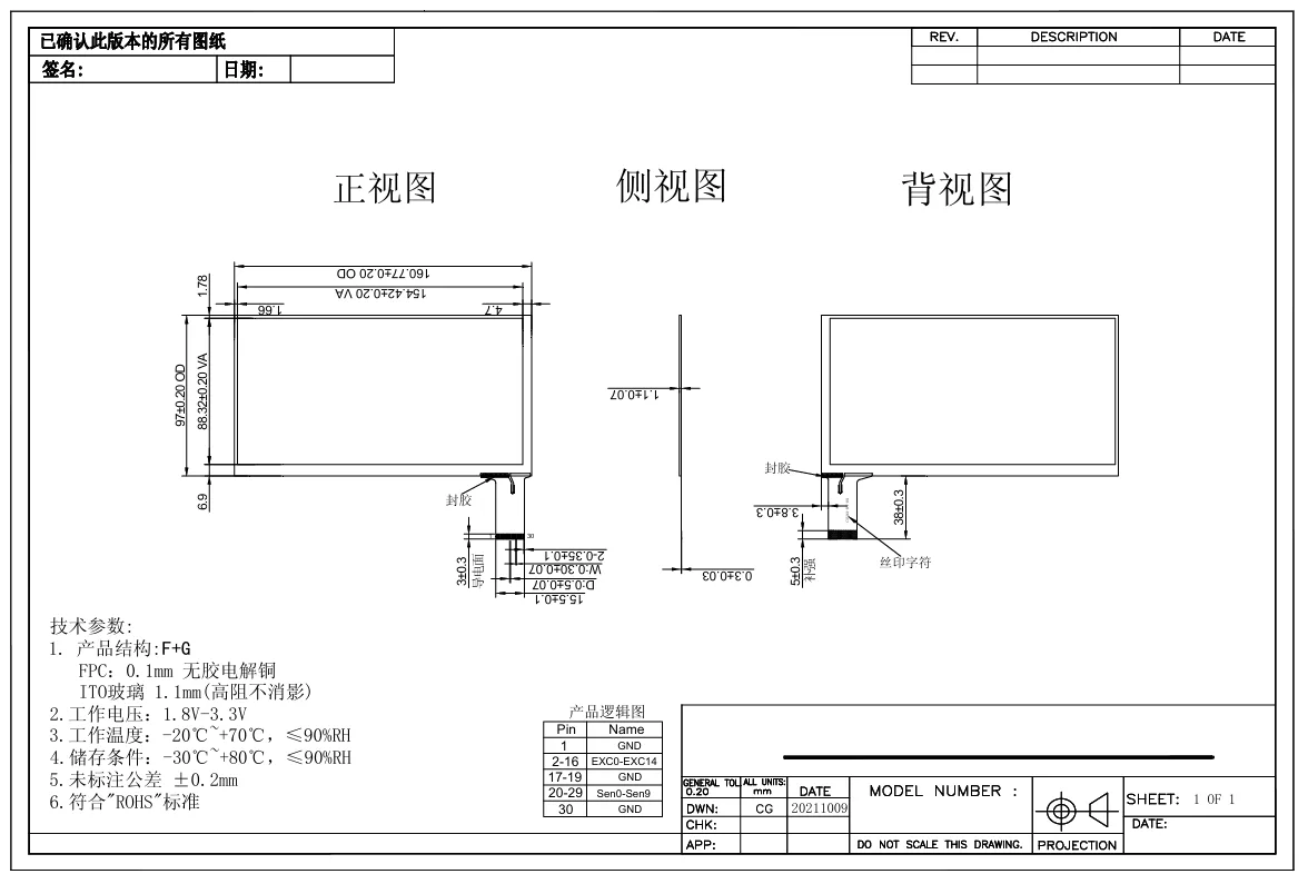 97,00 × 160,77 × 1,10 mm (sentsorearen eskema; ​​tolerantzia: ±0,20 mm)